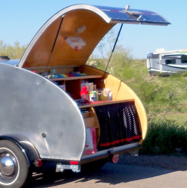 This little TearDrop was built by a new friend.  Betty ordered the kit and put it together herself over a year.  She now misses having a project, so plans are in the works to build another.